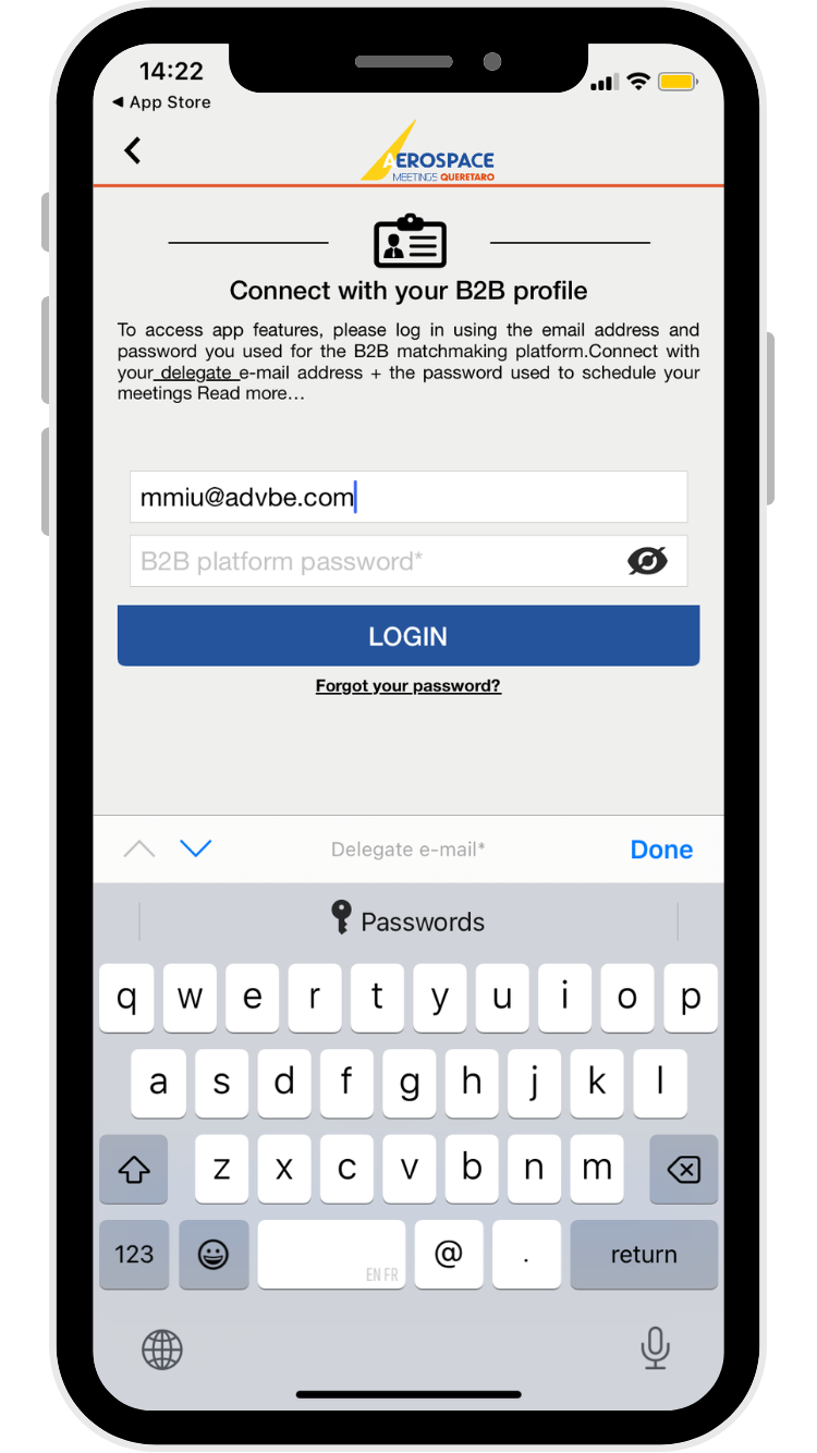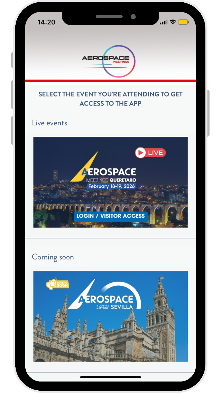 Choose the LIVE EVENT Aerospace Meetings Queretaro and log in with your B2B profile.
